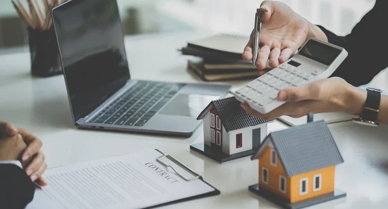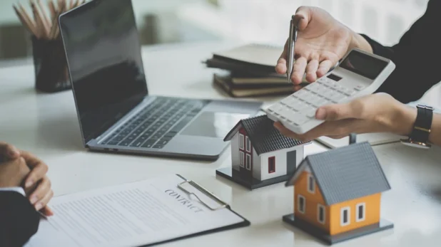 visuel 3 maisons + main tenant une calculatrice(© Adobestock)