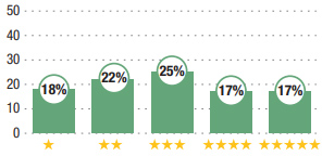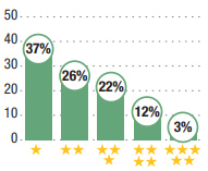 L’assurance vie en euros fait aussi le plein : 25 % des personnes interrogées lui ont attribué trois étoiles, 17 % quatre étoiles et 17 % cinq étoiles.