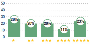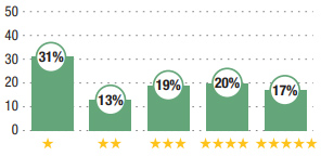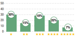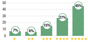 Découvrez les résultats de notre enquête réalisée en fin d’année auprès des internautes. Les pourcentages indiquent la proportion de sondés ayant attribué une note de 1 à 5 étoiles.