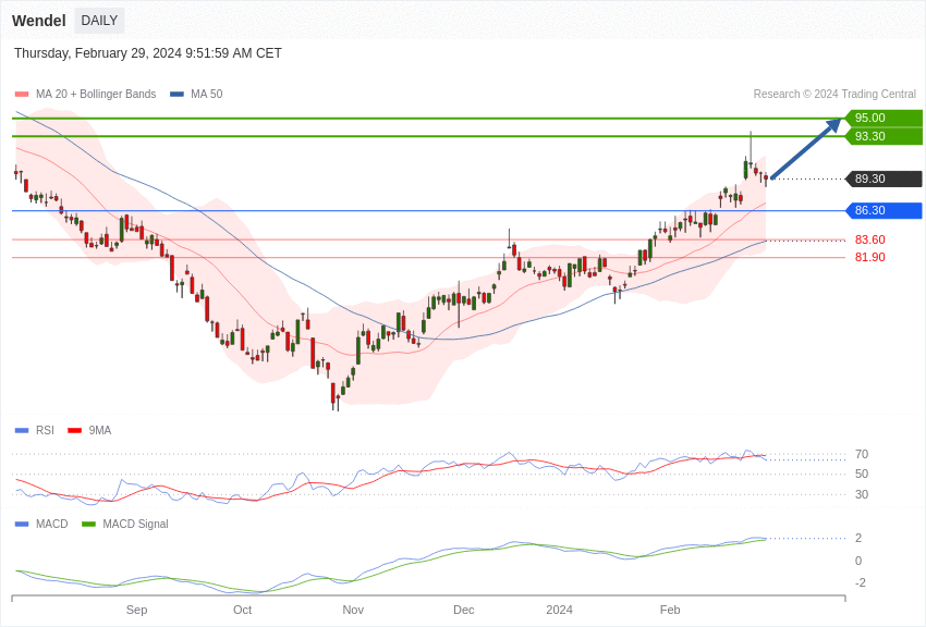 La configuration du titre Wendel est positive tant qu’elle évolue au-dessus des 86,30 euros.